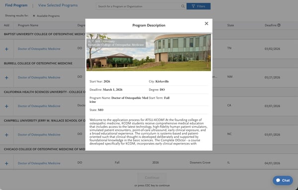 Here, you’ll select the program(s) to which you want to apply. You may also use the “Add Program” tab at the top of the main application page.