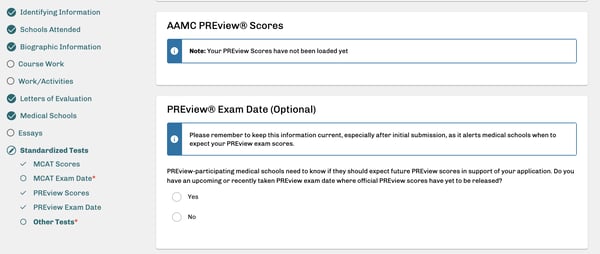 After MCAT details, you’ll see previous or upcoming AAMC PREview exam dates, as well as your scores if you’ve already taken this situational judgment test.